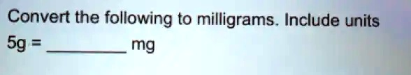 Convert the following to milligrams. Include units 5g = __ mg
