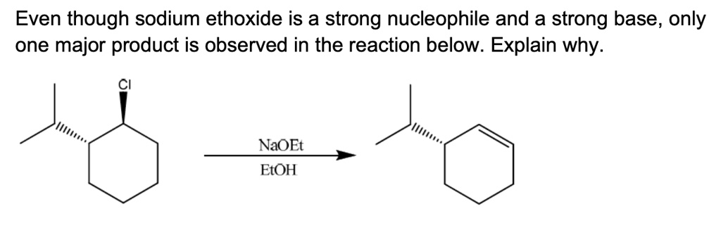 Even though sodium ethoxide is a strong nucleophile and a strong base, only one major product is observed in the reaction below. Explain why.