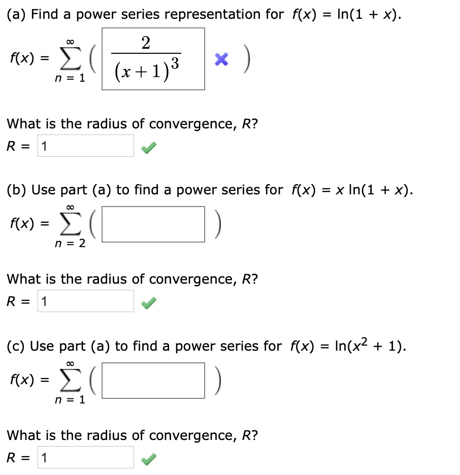 (c) Use part (a) to find a power series for f(x) = ln(x² + 1).